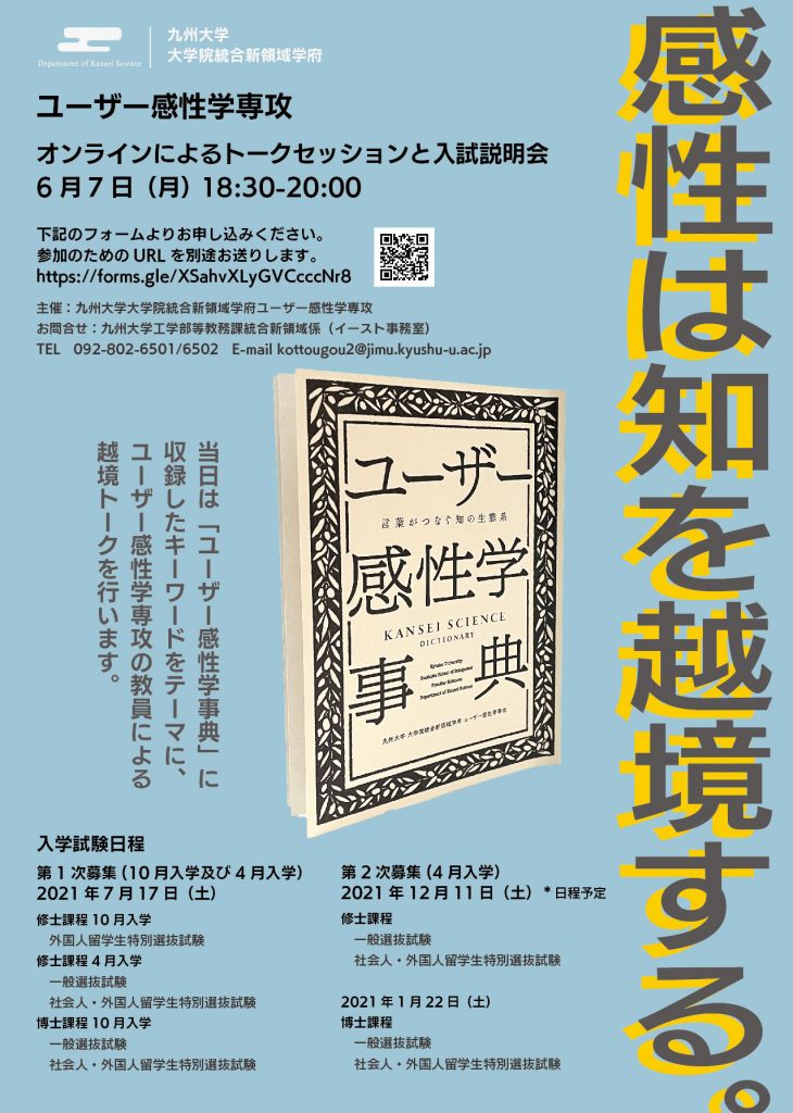 九州大学大学院統合新領域学府ユーザー感性学専攻の入試説明会はオンラインにて開催します。