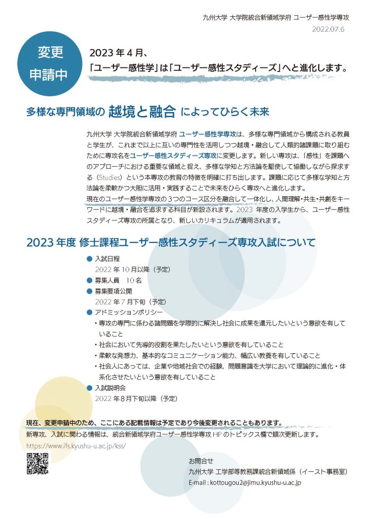 令和5(2023)年度以降のユーザー感性学専攻の変更予定について